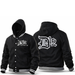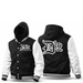 The D12 Hooded Wool Varsity Jacket. Choose from black sleeves or white. This timeless piece is warm, comfortable, and wool, with a hood, making it a perfect choice for winter weather. Its classic cut and design make it perfect for any outfit. Look your best and keep cozy this winter.